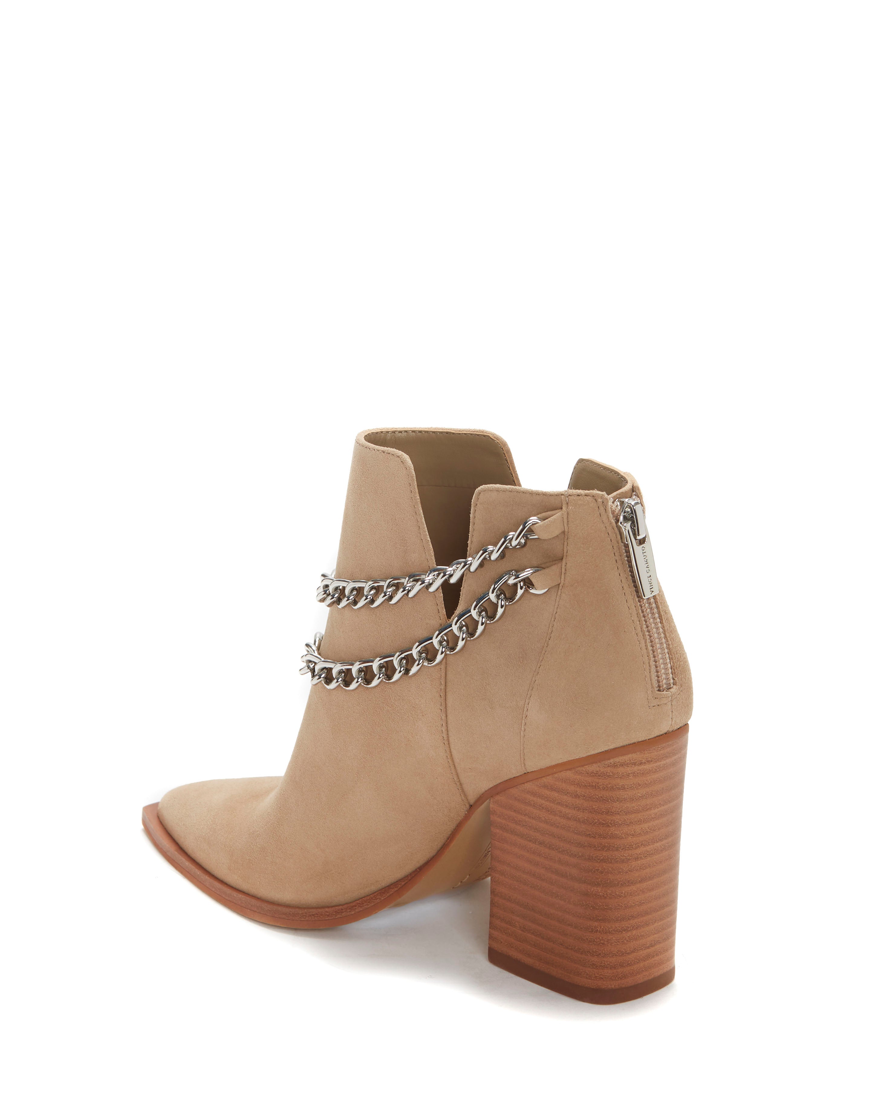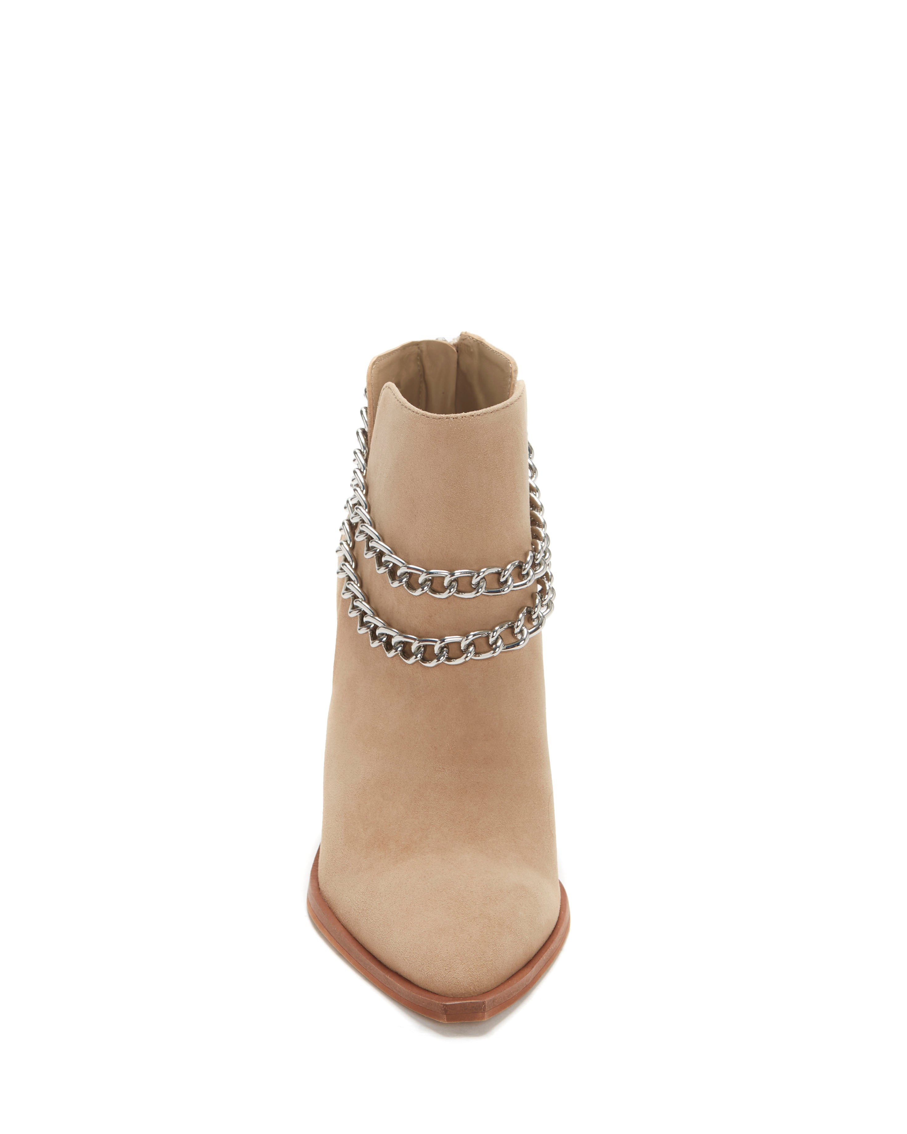 Move like a rockstar in the Gallzy bootie. This ankle bootie is styled with slits at the sides for an easy fit and double layered chain accent around the vamp for added edge.