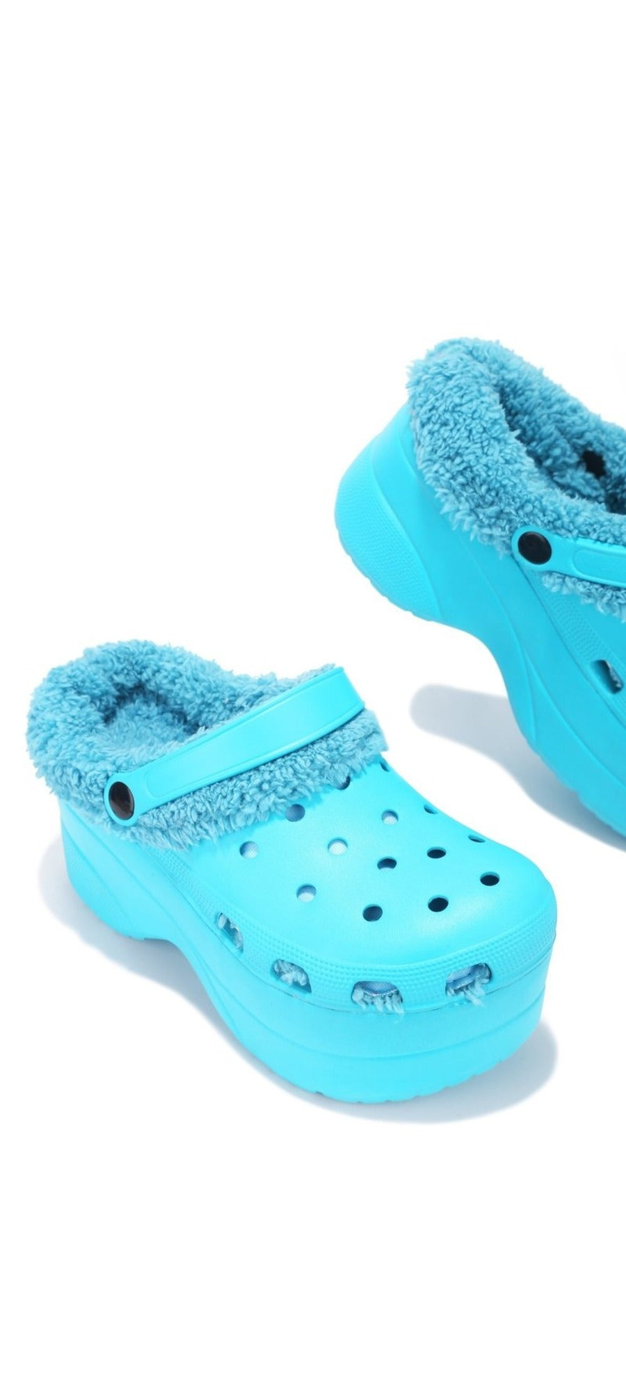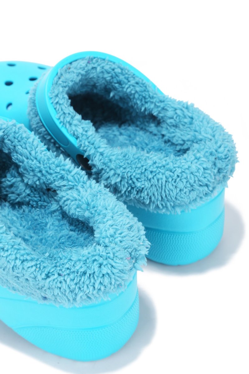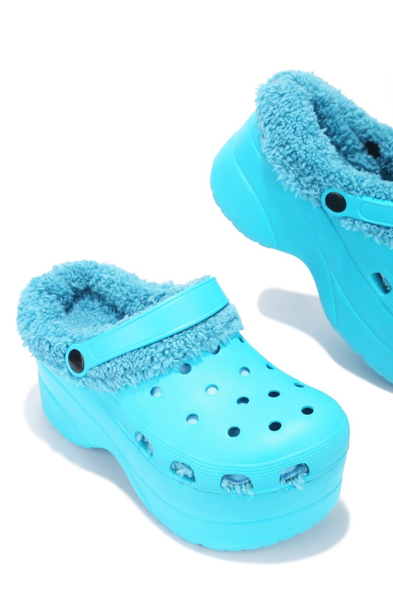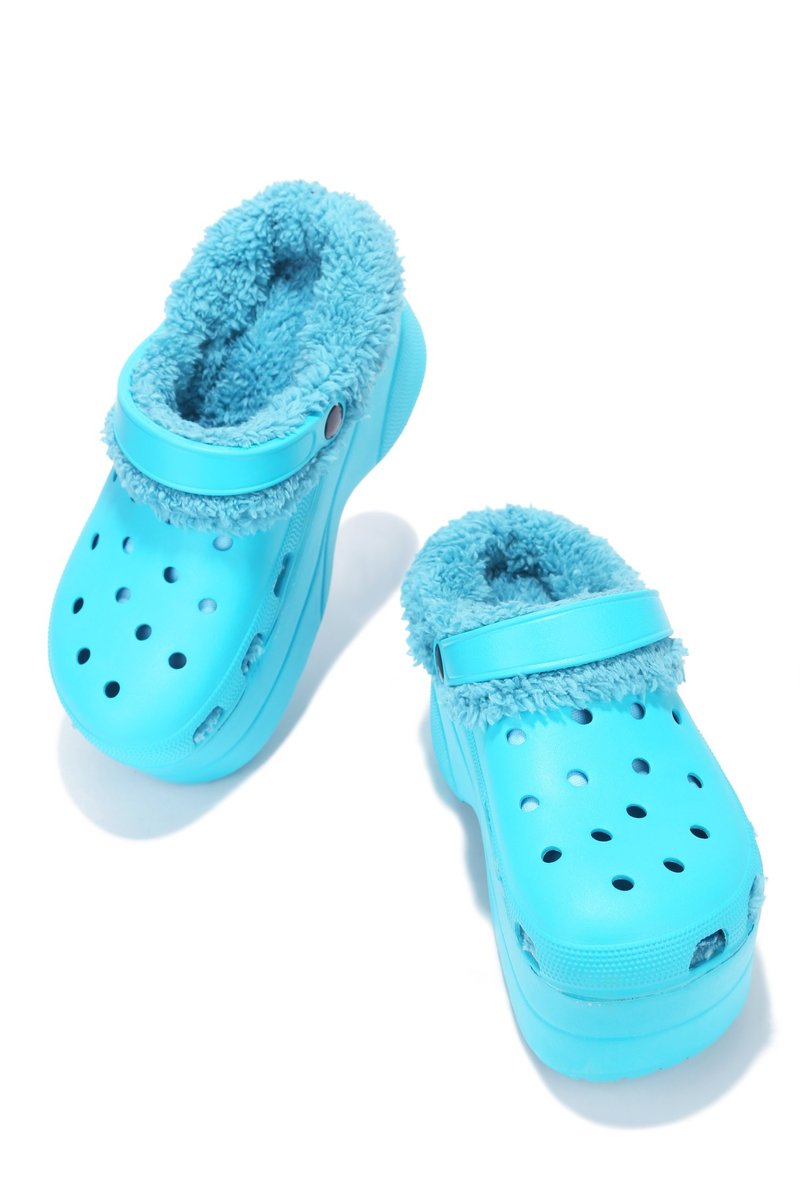 Cape Robbin Gardener Teal Fuzzy Lining Platform Clogs Fashion Comfortable Mules