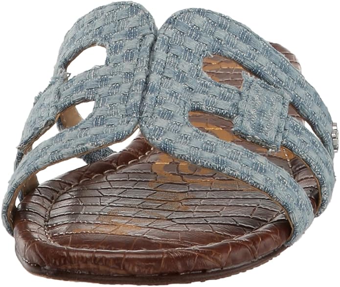 Sam Edelman Bay Montrose Blue Denim Slip On Rounded Open Toe Leather Strap Sandals
