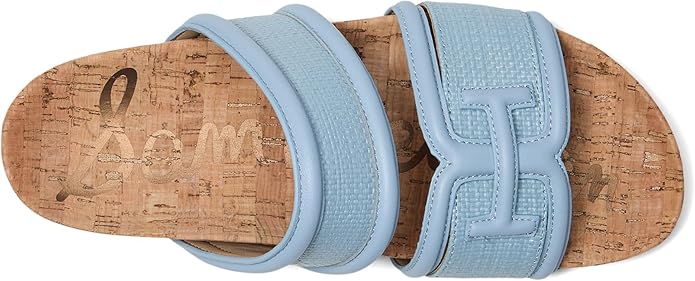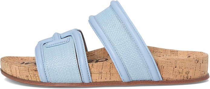 Go beyond the beach with these city savvy double-banded basketweave slides with chunky piped trim and bit detail.