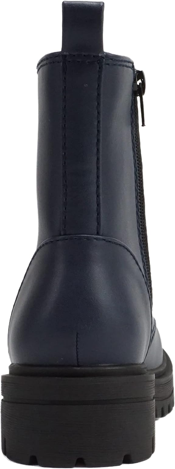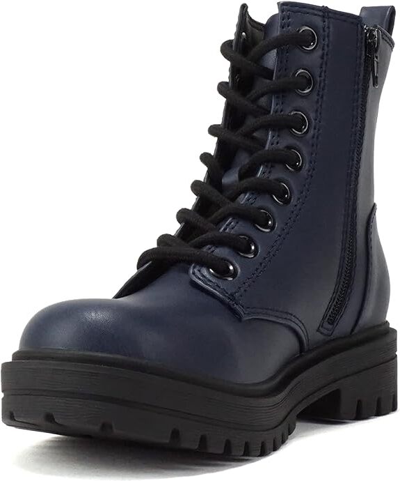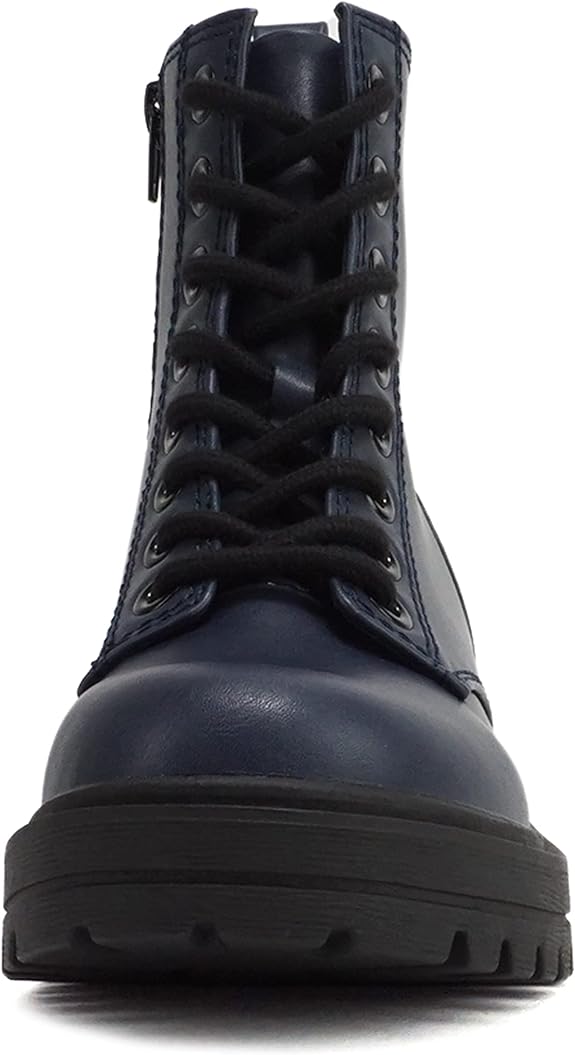 Soda Firm Navy Pu Lace Up Rounded Toe Lugged Chunky Platform Combat Ankle Boots