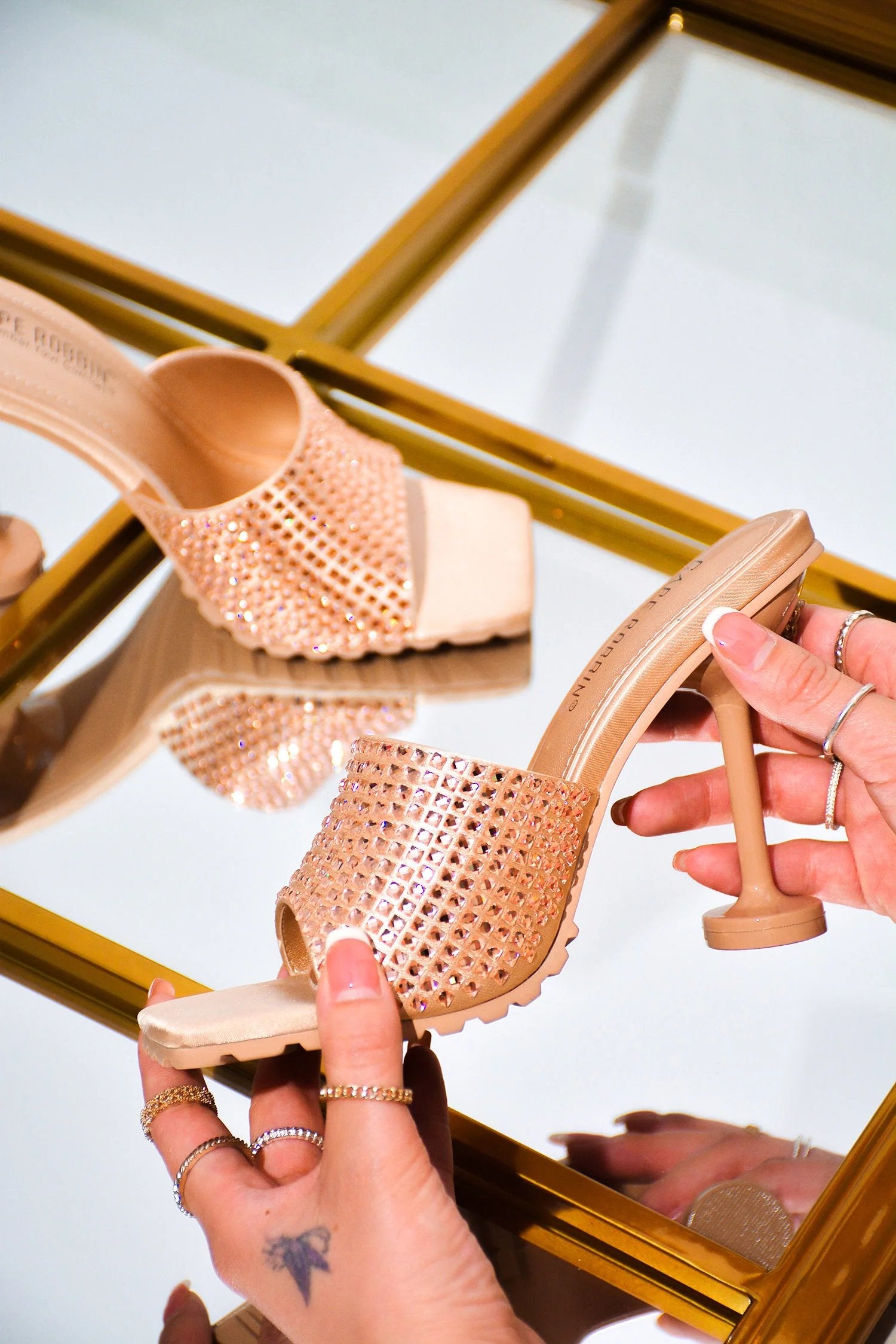 These Haig rhinestone detail mid heel mules will make a statement. The squared,open toe provides a contemporary look and the padded insole ensures a comfortable fit. The rhinestone detail adds a beautiful shine and makes them perfect for any special event or night out.