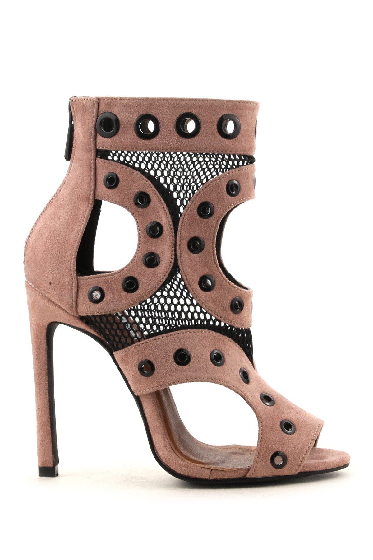 Cape Robbin June-13 Mauve Grommet Mesh Open Toe Cut-out Sandal Bootie Heels