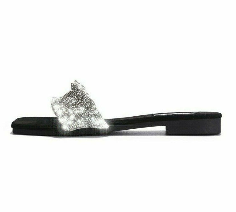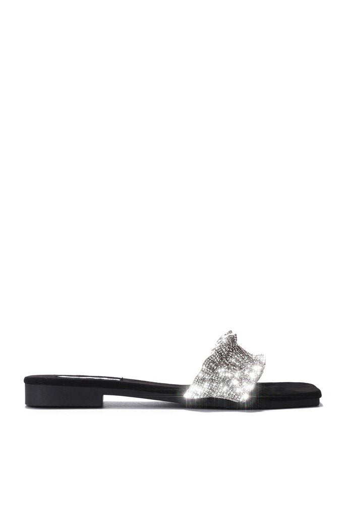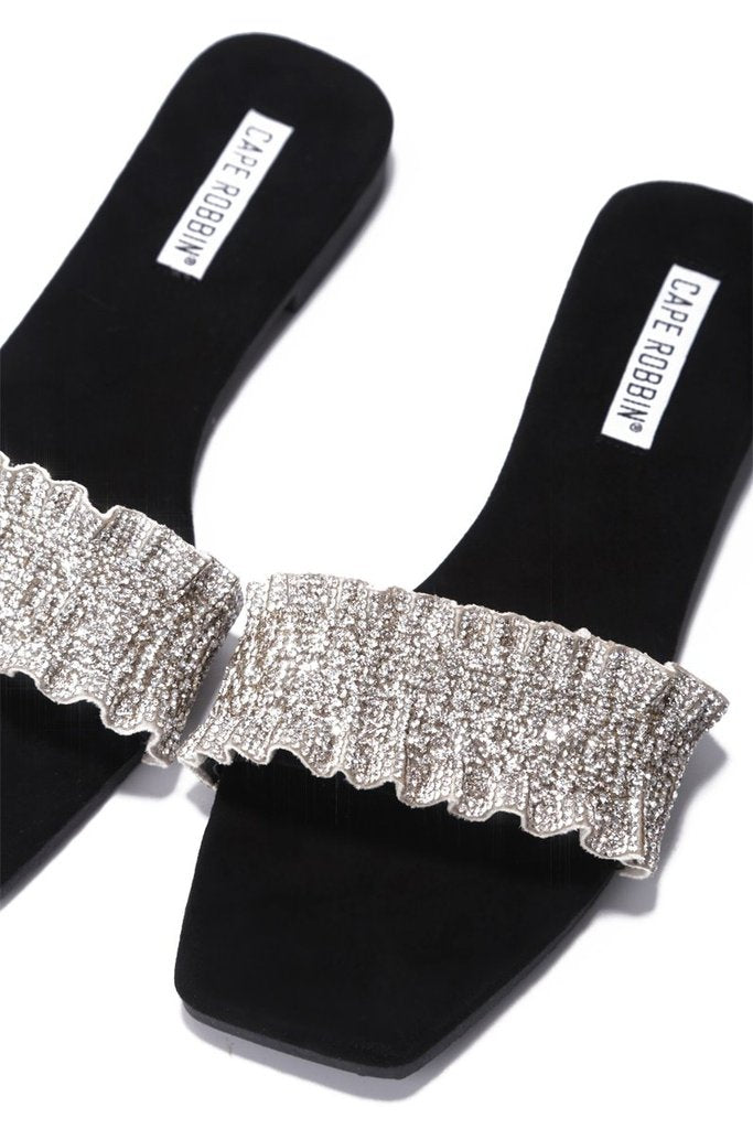 Cape Robbin Ohana Black Rhinestone Fashion Slip On Open Toe Mules Slide Sandals