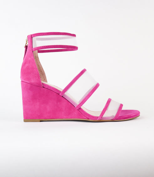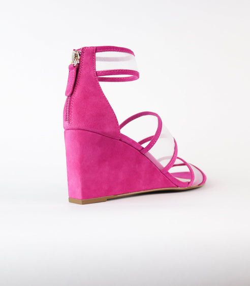 Cecelia New York Dorothy Wedge Sandals Clear Strap Heel Zip Strappy Ankle Sandal