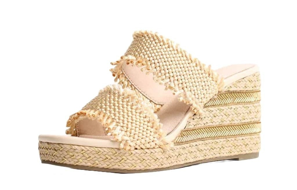 Cecelia New York Lady Platform Women Slip On Open Toe Heel Wedges Sandals