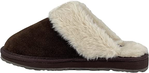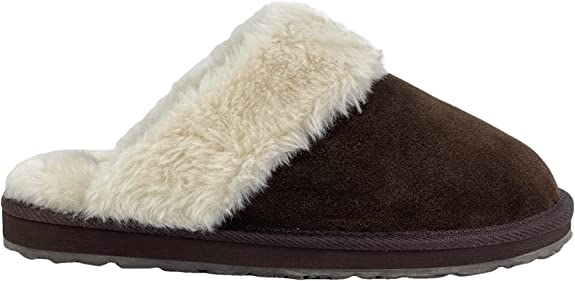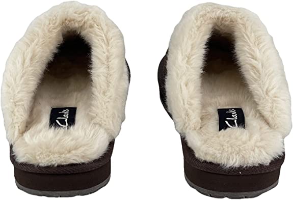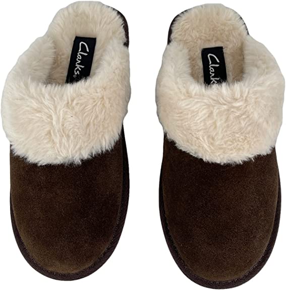 Clarks Womens Open Back Suede Leather Comfort Clog Slipper JMS0583C - Plush Faux Fur Trim - Indoor Outdoor House Slippers For Women