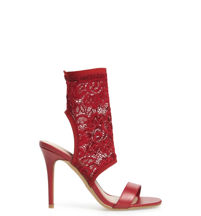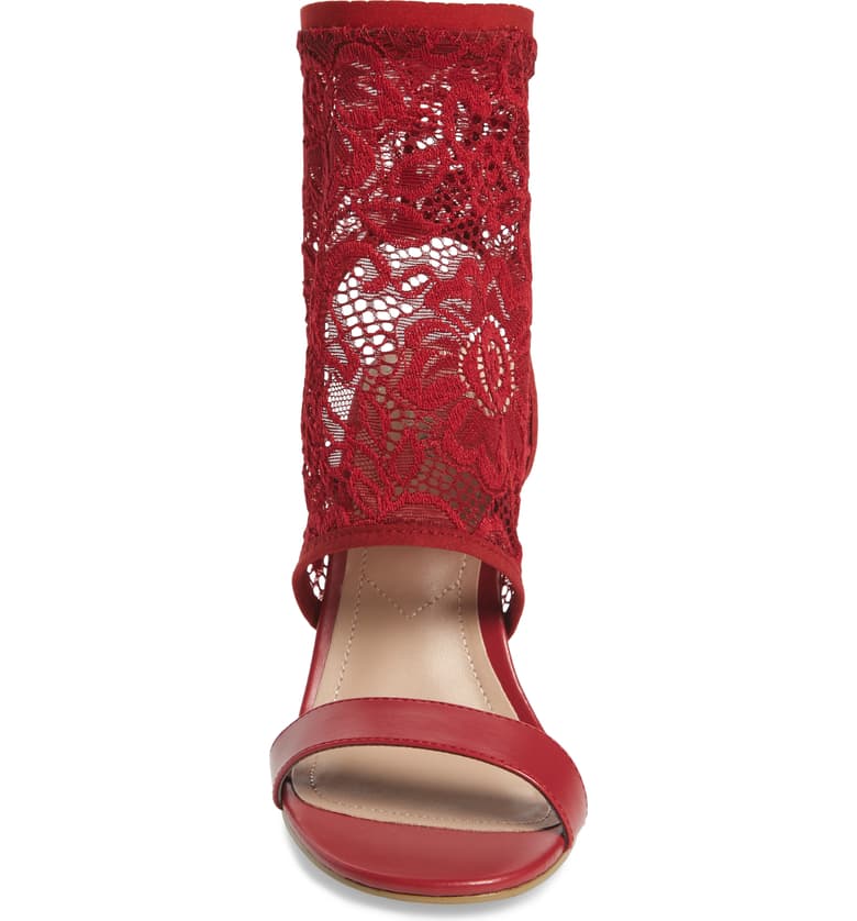 Charles David Remote Scarlet Red Lace Sock Fabric Bootie Stiletto Heeled Sandals