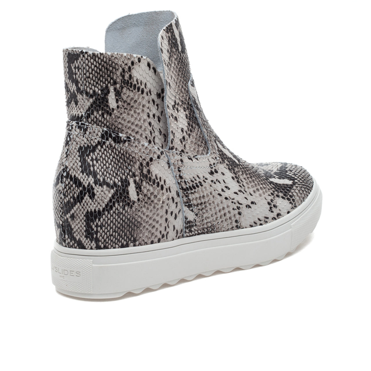 JSlides Women's POSH Hidden Wedge Round toe Platform Sneaker, OFF WHT/BLK EMB