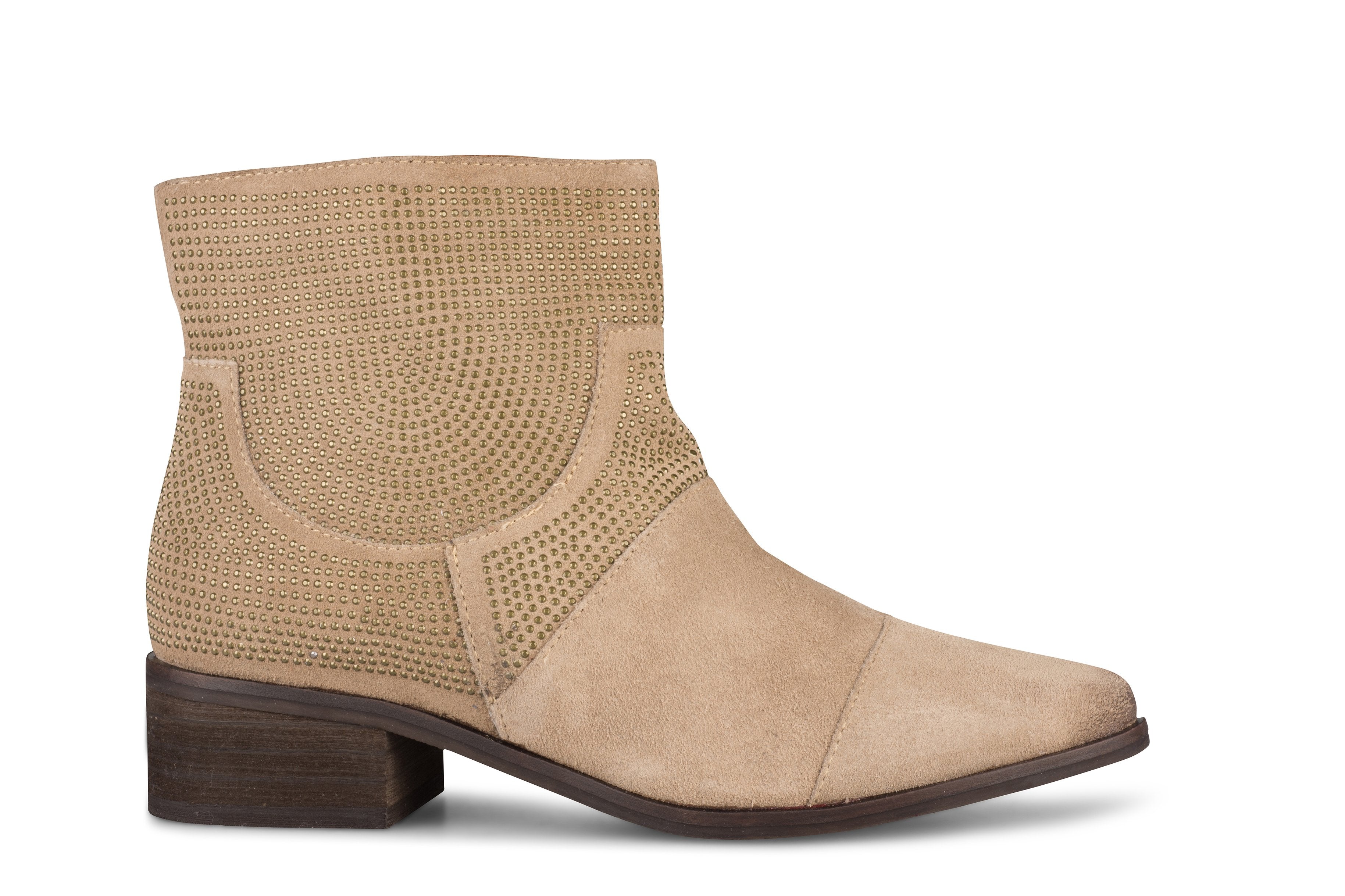 Klub Nico Women Zola Boots-Oatmeal Suede Nude Stacked Heel Chelsea Ankle Bootie