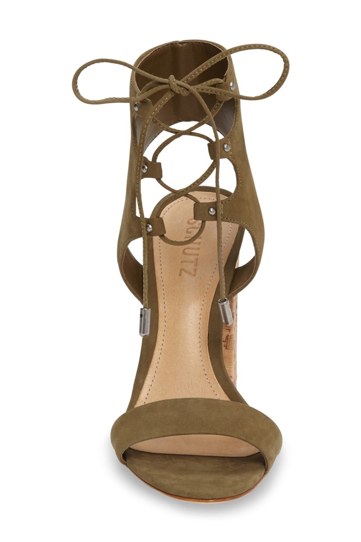 Schutz Cruz Comfrey Green Lace-Up Cuff Pumps Sandals High Block Heel Tie Up