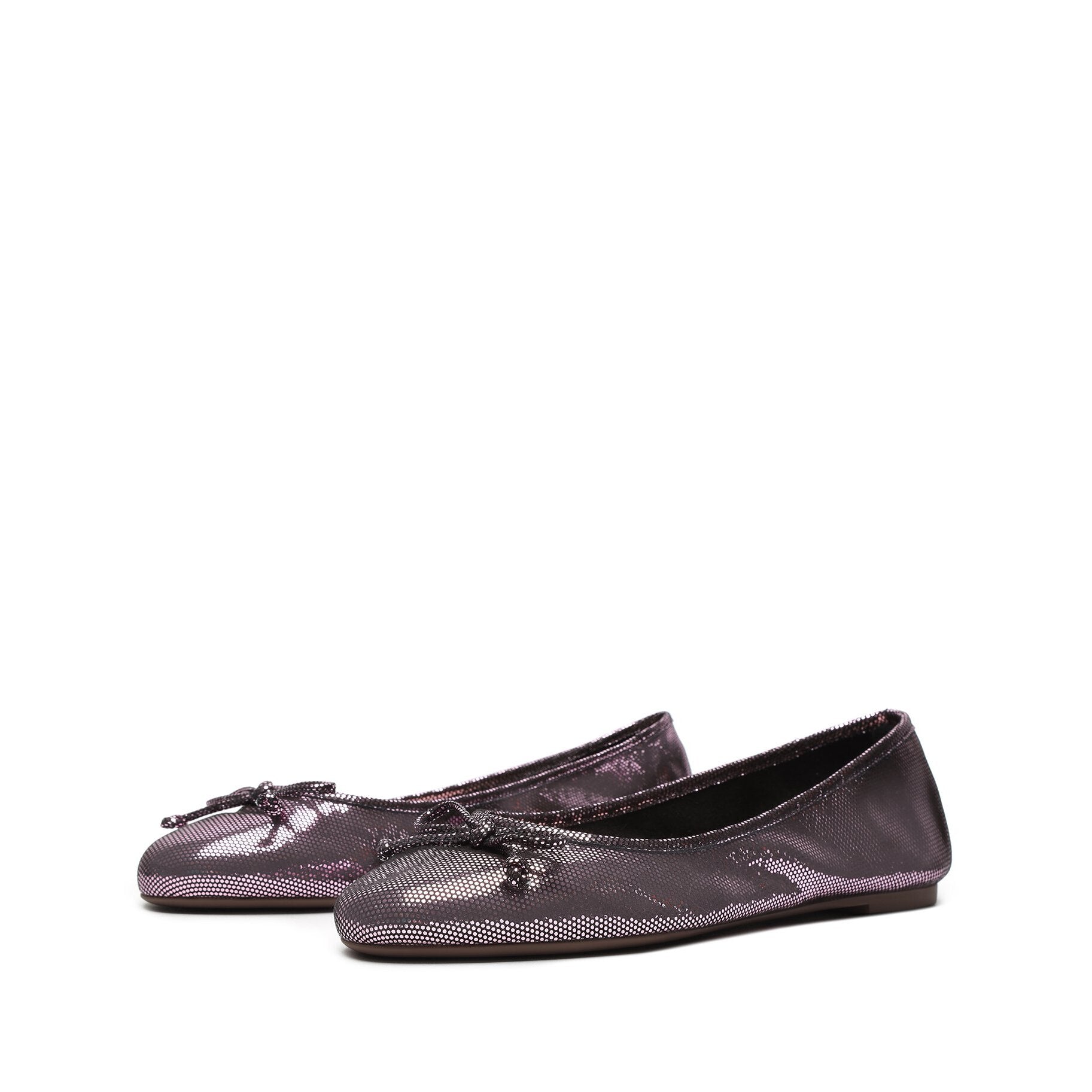 Schutz Damaris Metallic Leather Round Toe Ballet Flat Cherry Ballet Shoes