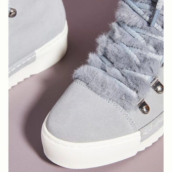 Cecelia New York Seymore Mid Blue Grey Weather Sneaker Fur Lace Up Fashion Boots