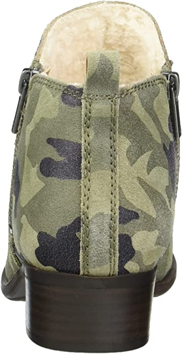 Lucky Brand Basel Camo Cozy Block Heel Almond Toe Pull On Suede Ankle Booties