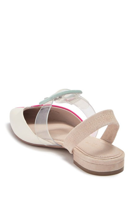 tyle runs half to full size big. The brand suggests ordering down. Own your style in an oh-so-chic Deacon Flats. The color-block flap is constructed from a combination of leather, suede and clear lucite for a retro-chic finish. Color blocking throughout with a suede buckle at the clear vamp strap for a floating illusion. Closed, pointed-toe silhouette. Stretch heel strap for easy on and off. Leather lining and insole. Lightly padded, fixed footbet. Mini wrapped flat heel. Synthetic outsole. Imported. Measurements: Heel Height: 3?4 in Weight: 7 oz Product measurements were taken using size 7.5, width M. Please note that measurements may vary by size. Weight of footwear is based on a single item, not a pair.
