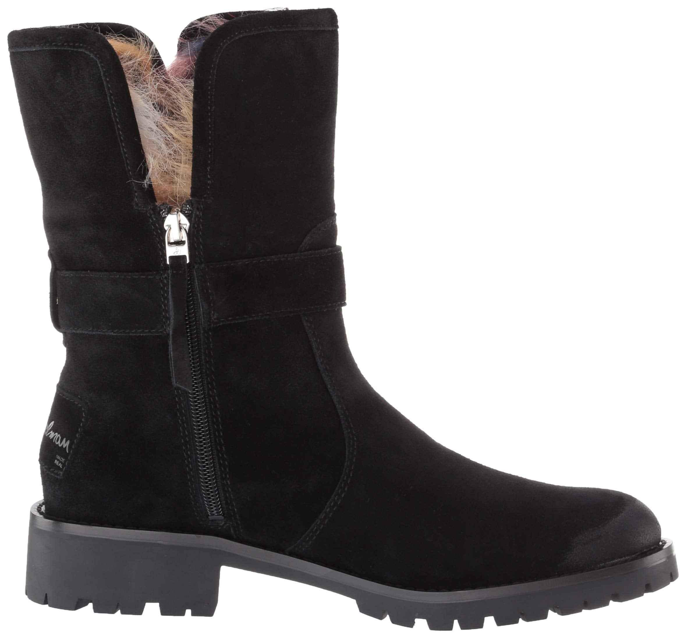 Mid-calf cold weather boot with faux fur detailing shoes epitomize chic comfort. With exceptional materials and fine styling, each pair of shoes is an affordable luxury that cleverly combines a youthful outlook with a worldly sensibility. Sophistication with down-to-earth appeal mean that these shoes are made to be lived in. Whether it's a classic revisited for a modern interpretation or a cutting edge design, we always keep an emphasis on comfort.