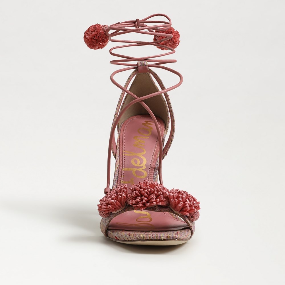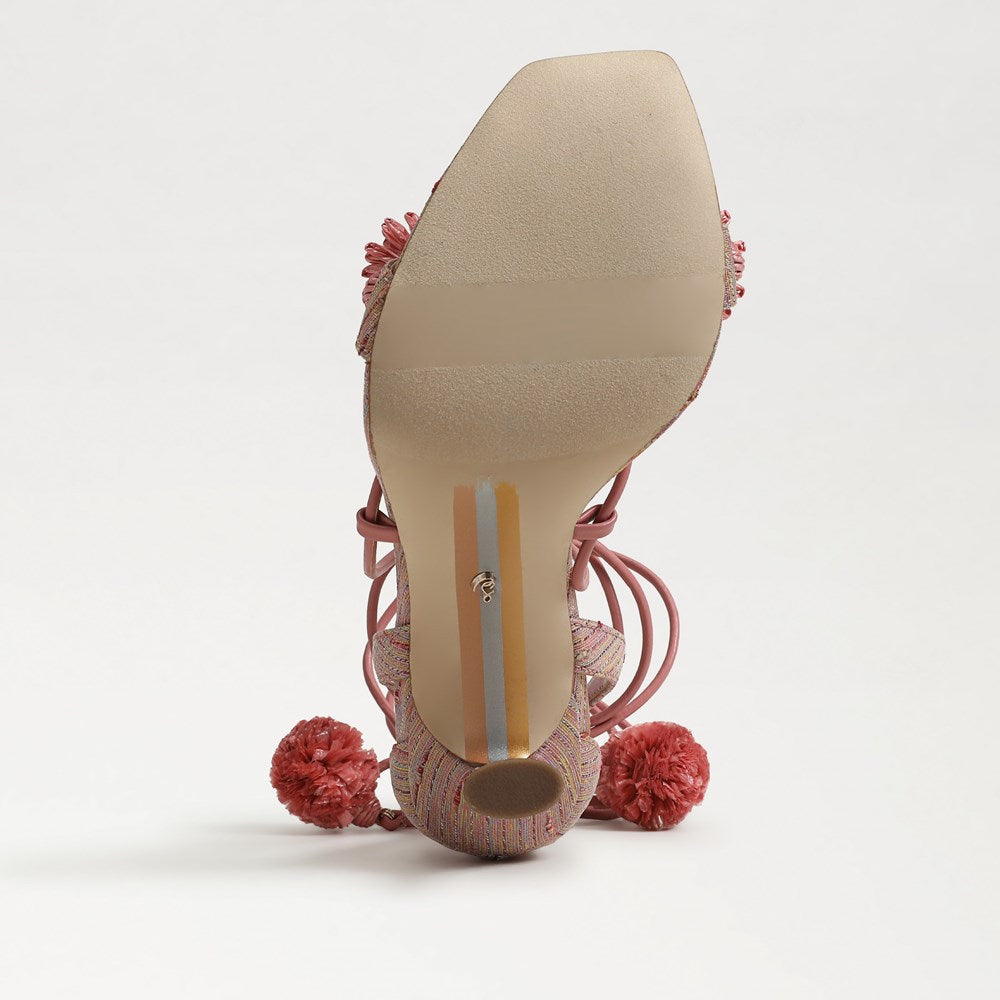 Sam Edelman Leela Pink Lily Squared Open Toe Tie Up Stiletto Heeled Sandals