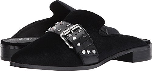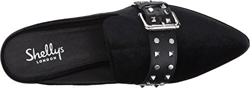 Shellys London Elon Black Velvet Flats Mules Slides Pointed Toe Buckle Slip On