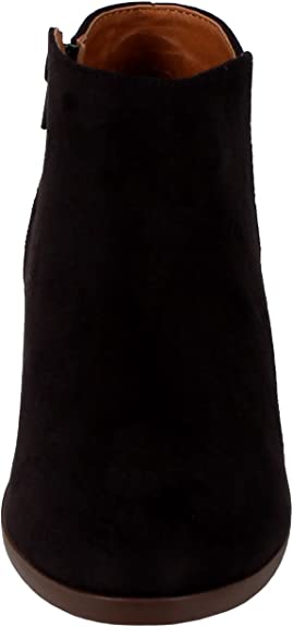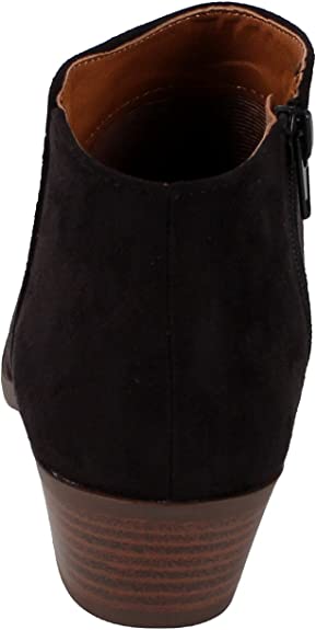Women's low ankle booties with chunky stacked heel, closed round toe and side zipper. Stylish yet comfortable block heel is measured 3 inches tall.