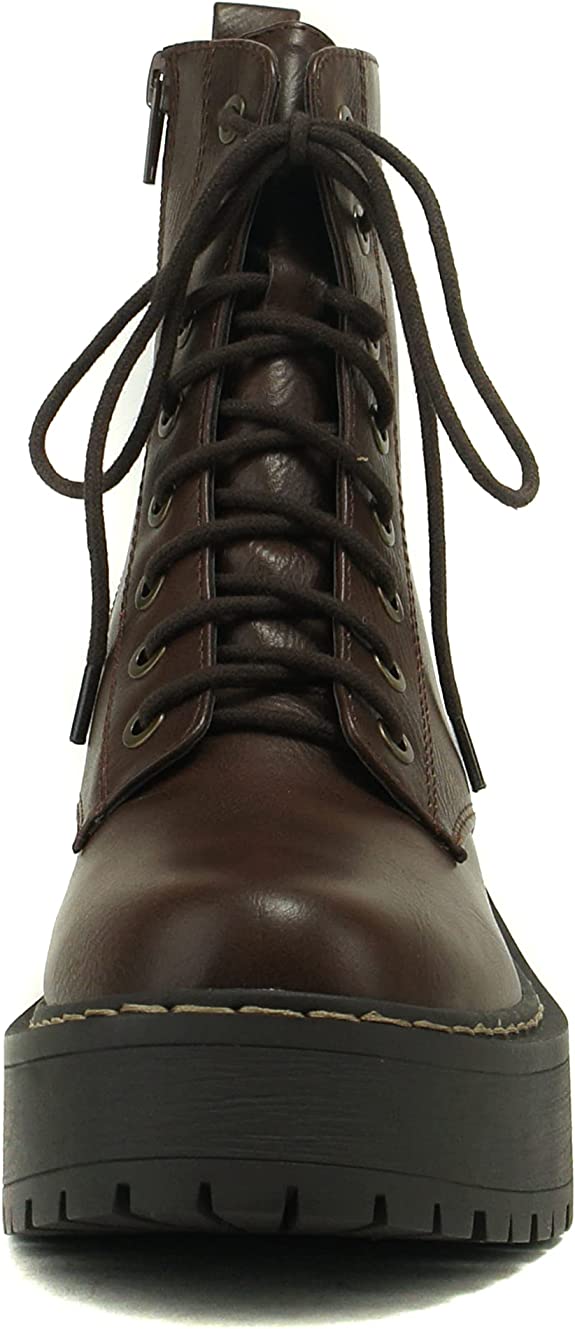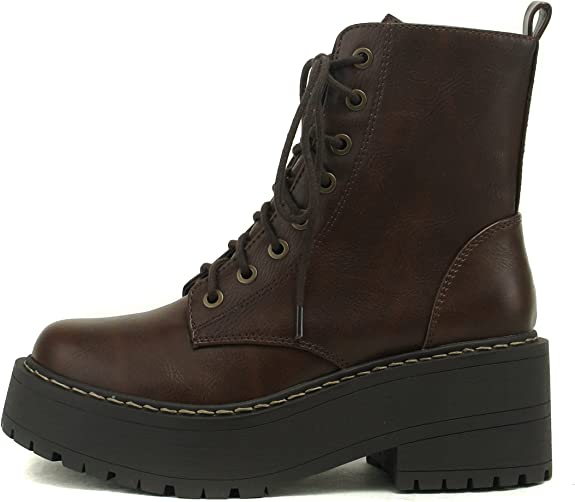 - Platform Combat Boot with Chunky Lug Sole Platform and Chunky Heel with Welt Stitching
