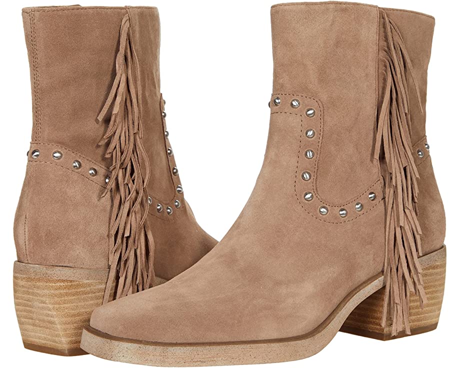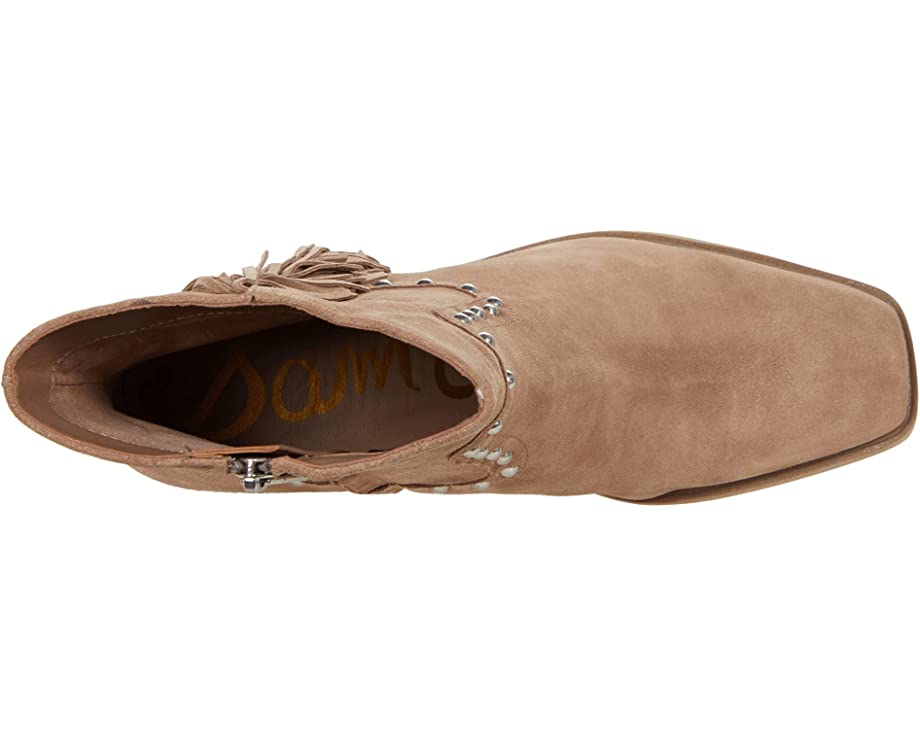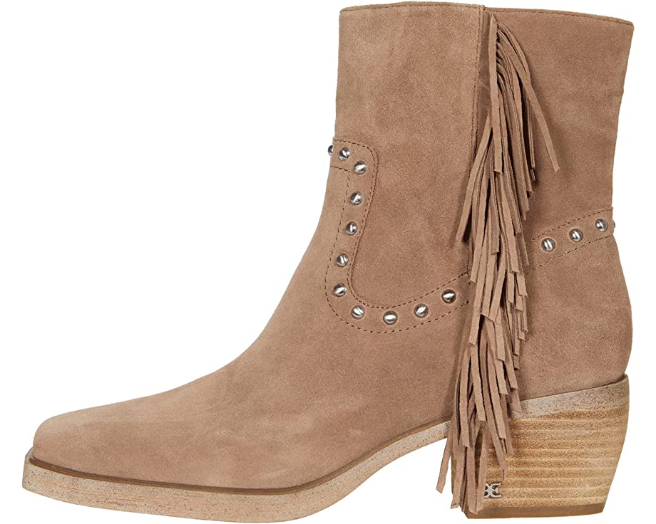 Sam Edelman Bernie Cedarwood Taupe Suede Almond Toe Western Fringe Ankle Boots