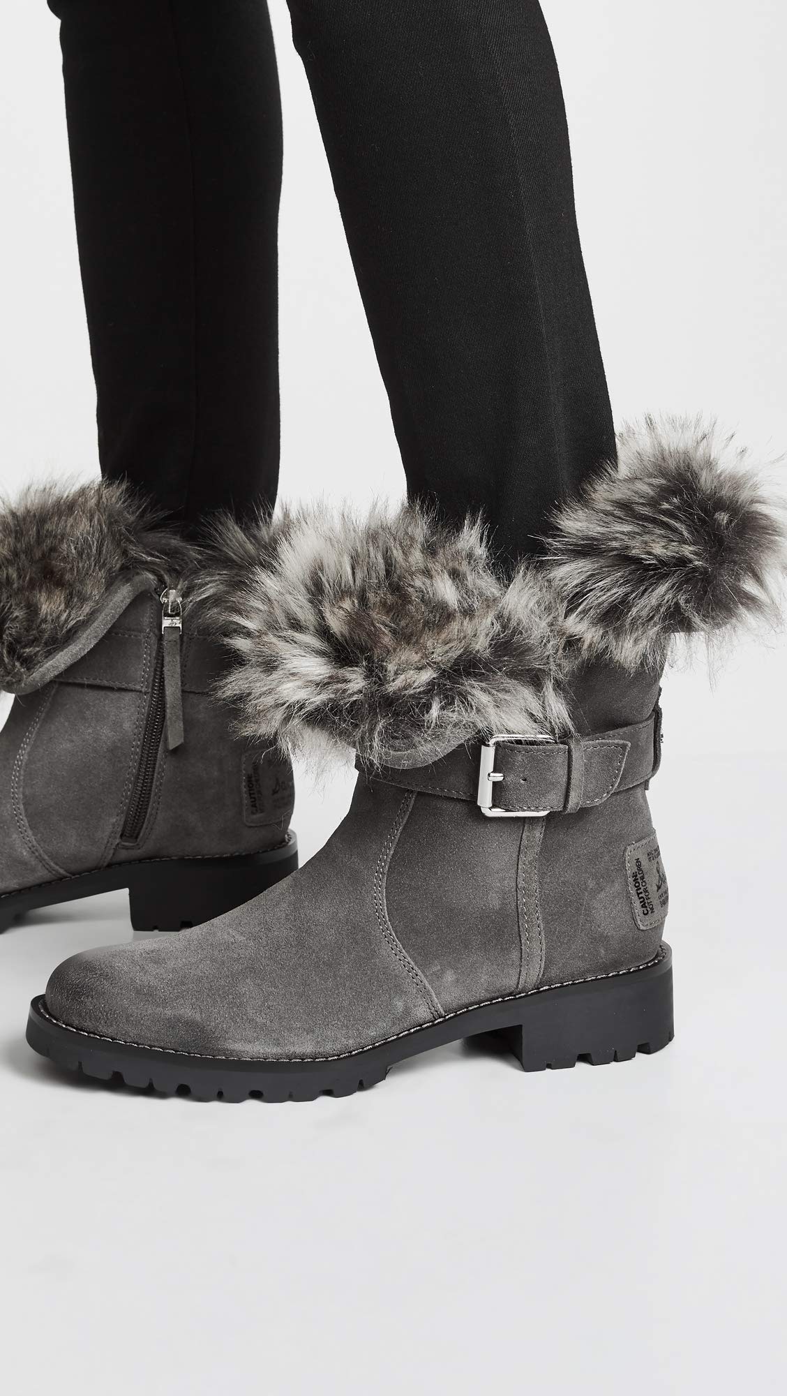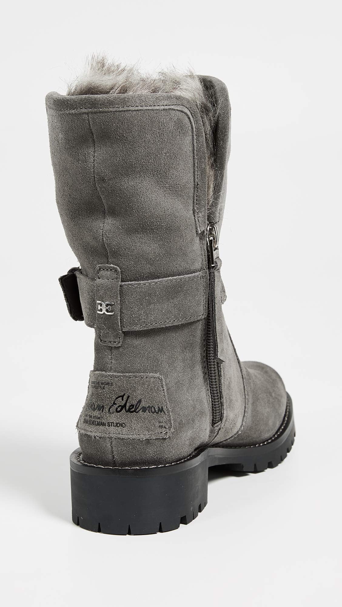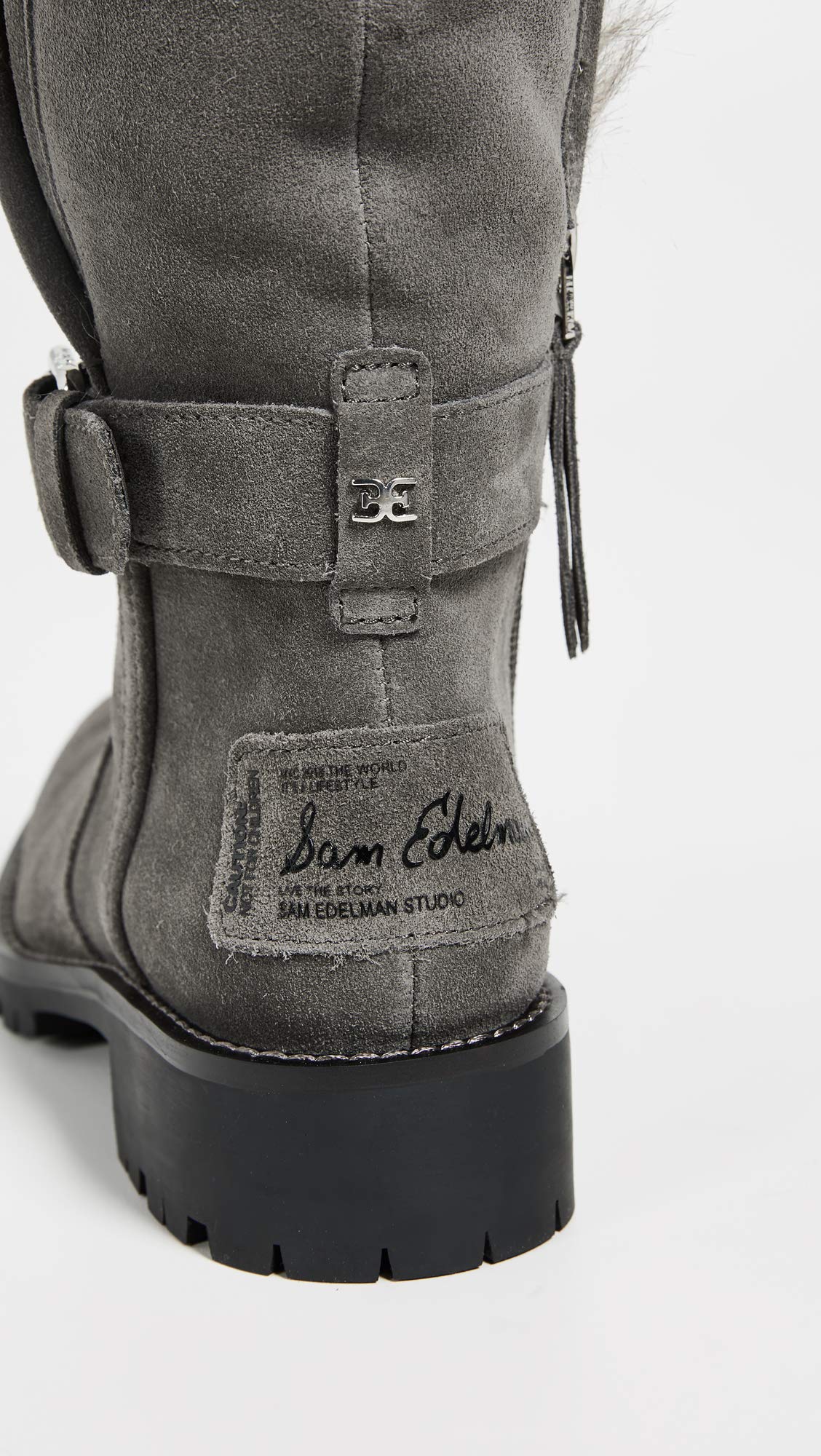 Sam Edelman Jeanie Gray Suede Fur Lined Lug Sole Moto Lace Up Chelsea Boot