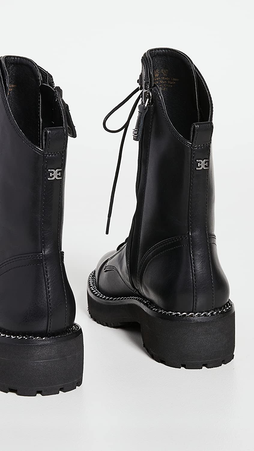 Sam Edelman Lenley Black Leather Chunky Heel Combat Lace Up Mid-Calf Boots