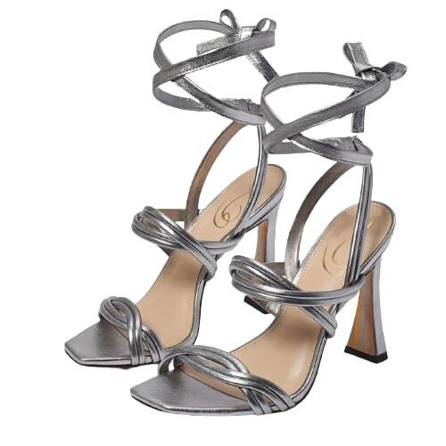 Sam Edelman Lonnie Slate Metallic Spool Heel Squared Toe Tie Up Heeled Sandals