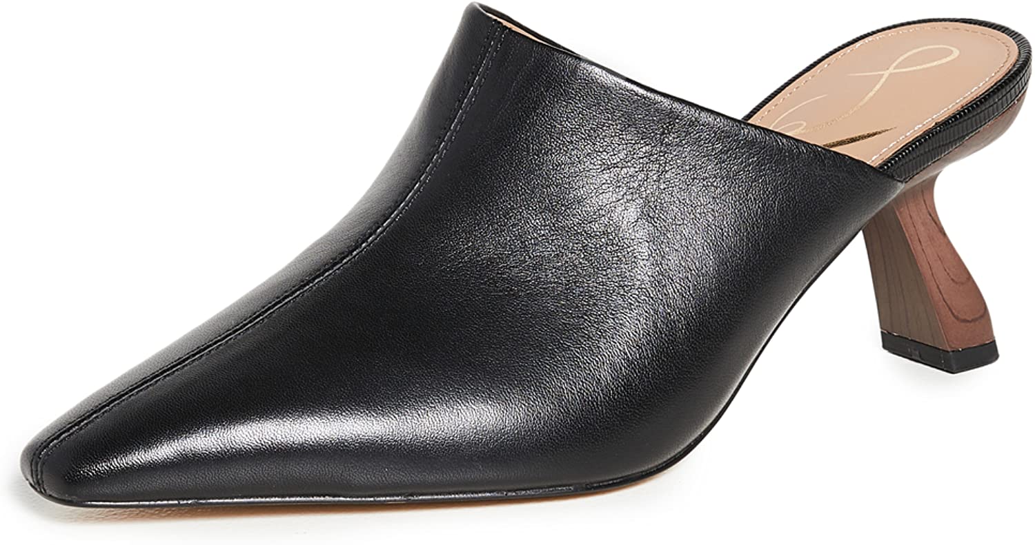 Sam Edelman Skya Black Leather Pointy Toe Slip On Spool Heel Fashion Ankle Pumps