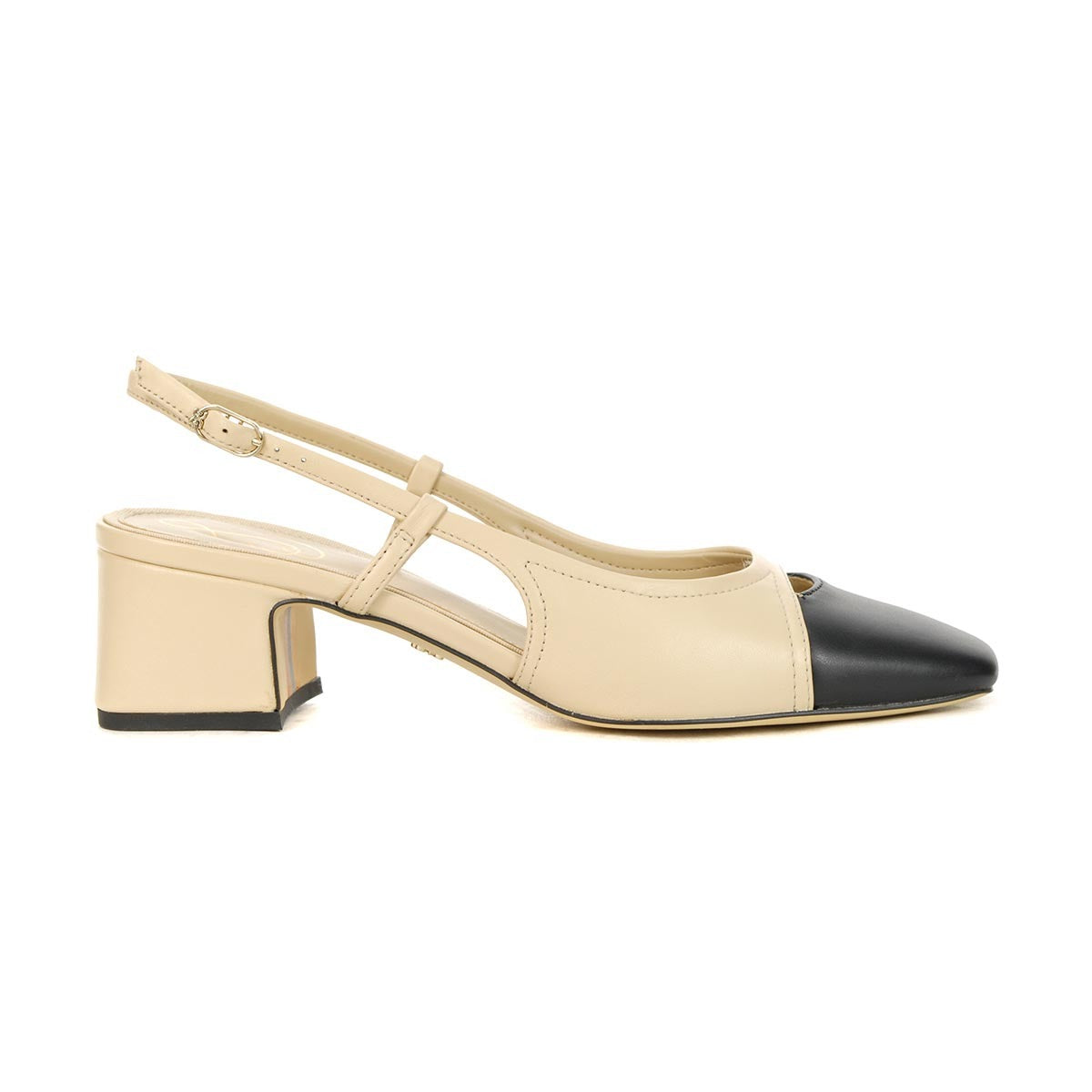 Sam Edelman Tarra Summer Sand/Black Slingback Almond Toe Dress Heeled Sandals