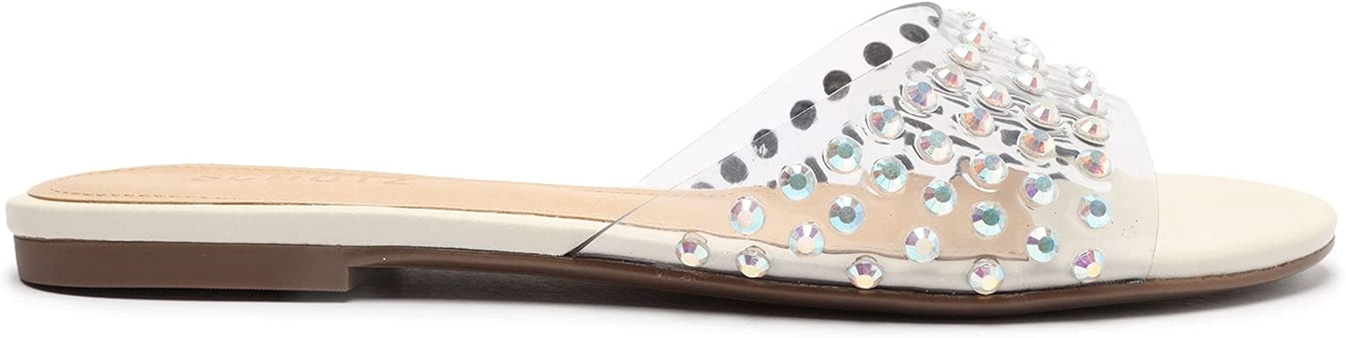 - The Schutz Greece Flat Clear Vinyl Studded Sandals are a stylish and comfortable shoe option.