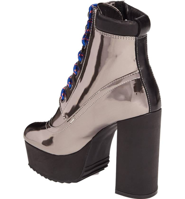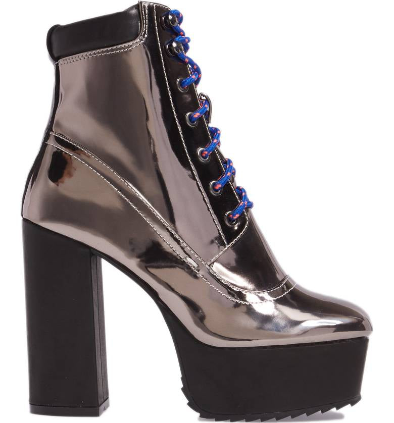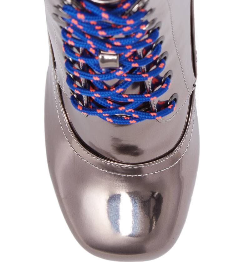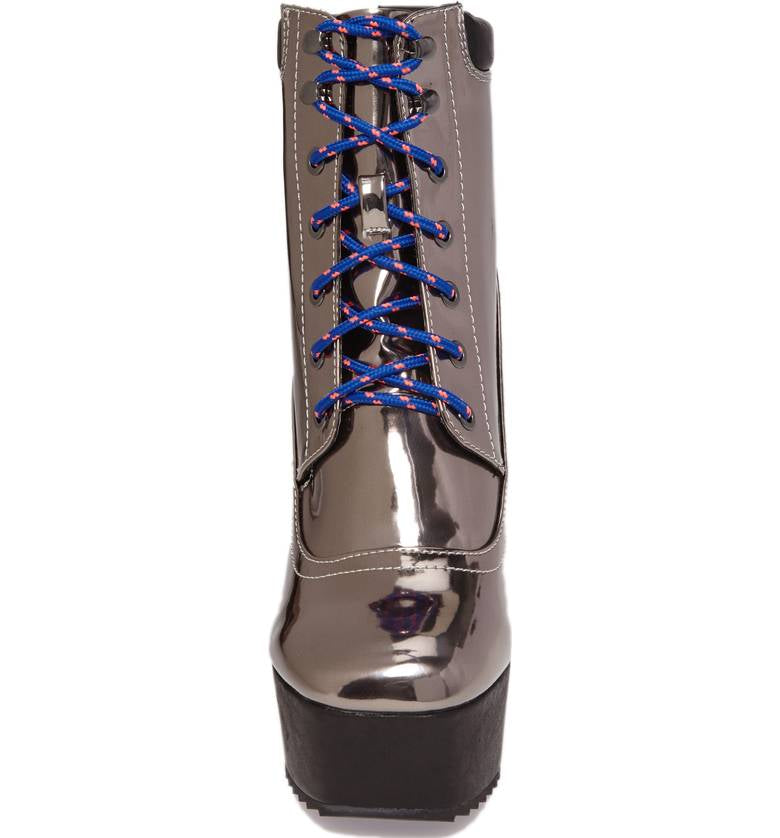 Rugged outdoor performance meets punk London attitude in this hiking-style boot fronted by brightly contrasting laces and set on a towering platform sole.