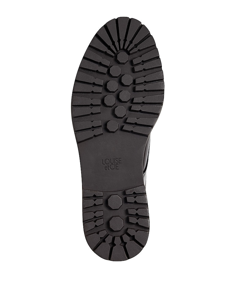 - Round toe; lace-up shaft; geo buckle hardware; lug platform and sole