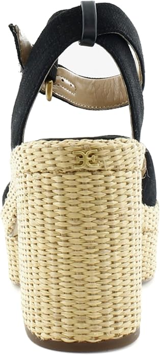 Sam Edelman Immie Black Linen Ankle Strap Open Toe Block Heeled Sandals