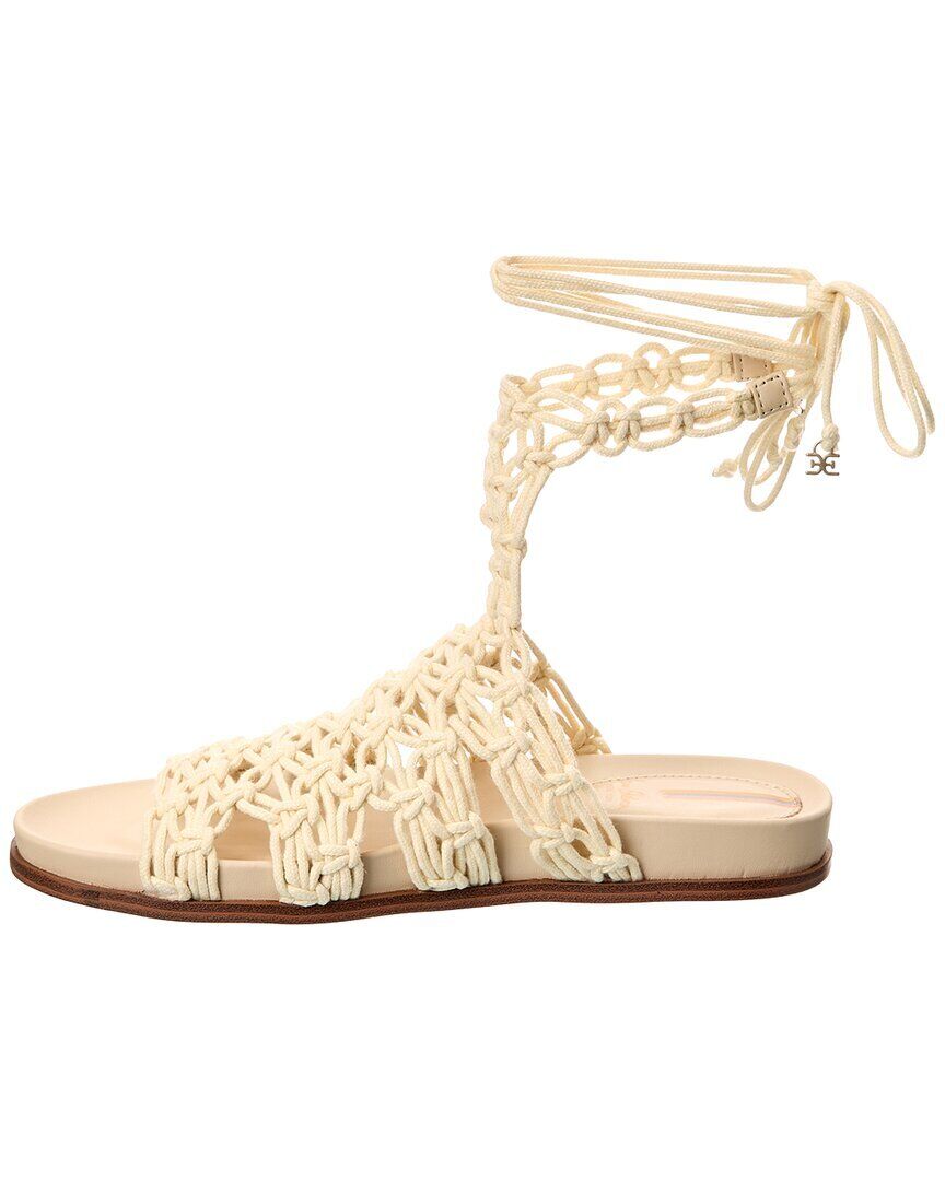 Leather upper with man made sole. Lace-up front with wrap tie closure. Braided strap detail.