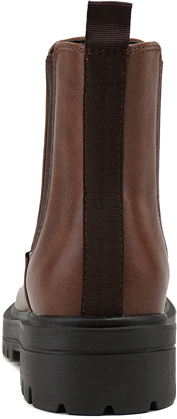 Soda Pilot Dark Tan/Brown Pull On Round Toe Chunky Platform Block Heel Wide Boots