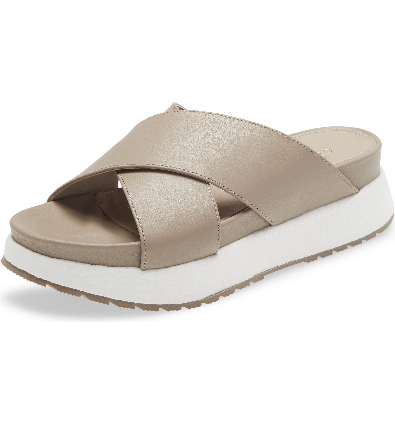 Cecelia New York UMA Nude Platform Crisscrossing Straps Wedges Slides Sandals