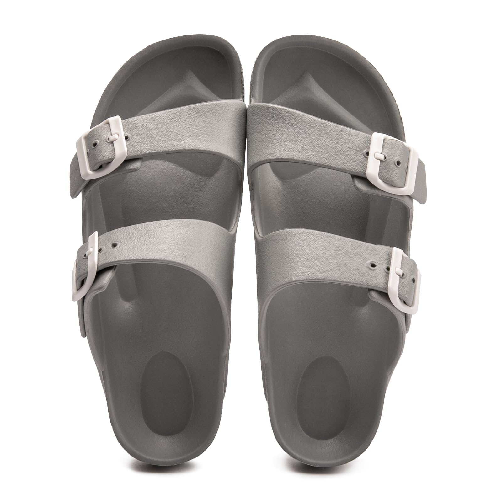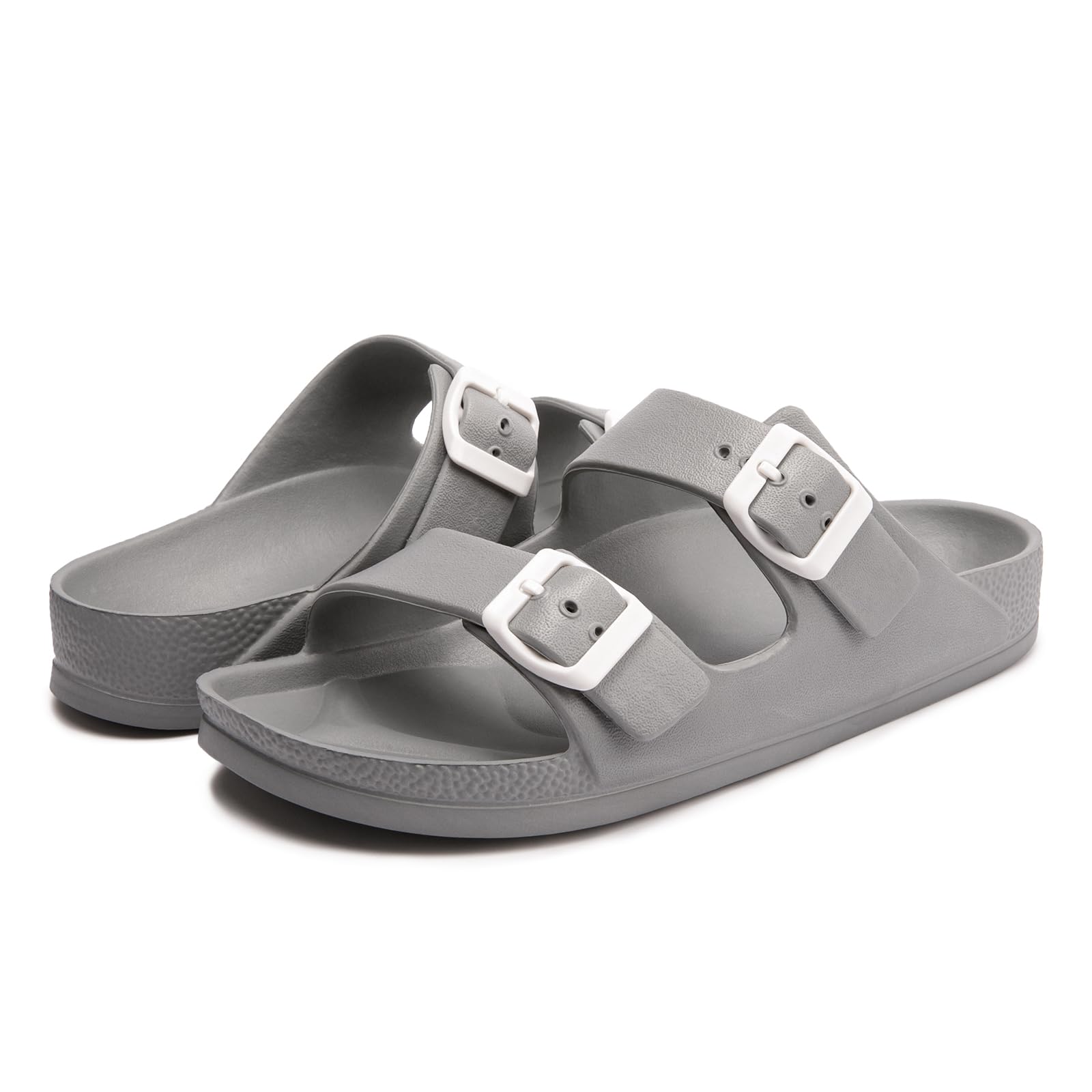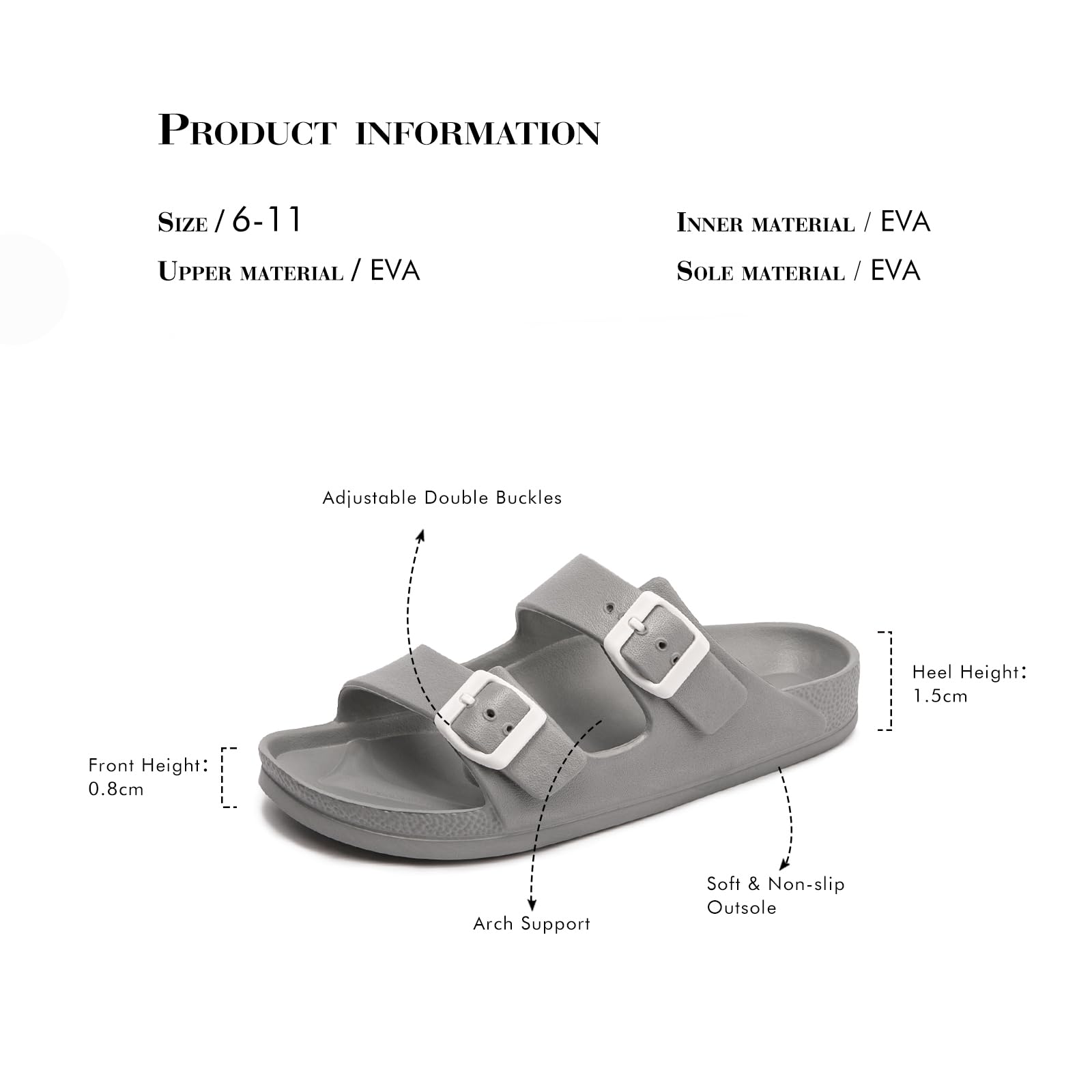 FUNKYMONKEY Women's Comfort Slides Double Buckle Adjustable EVA Flat Sandals