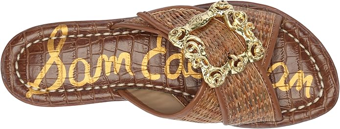 Sam Edelman Gracyn Cuoio Weave Slip On Open Toe Buckle Detailed Slides Sandals
