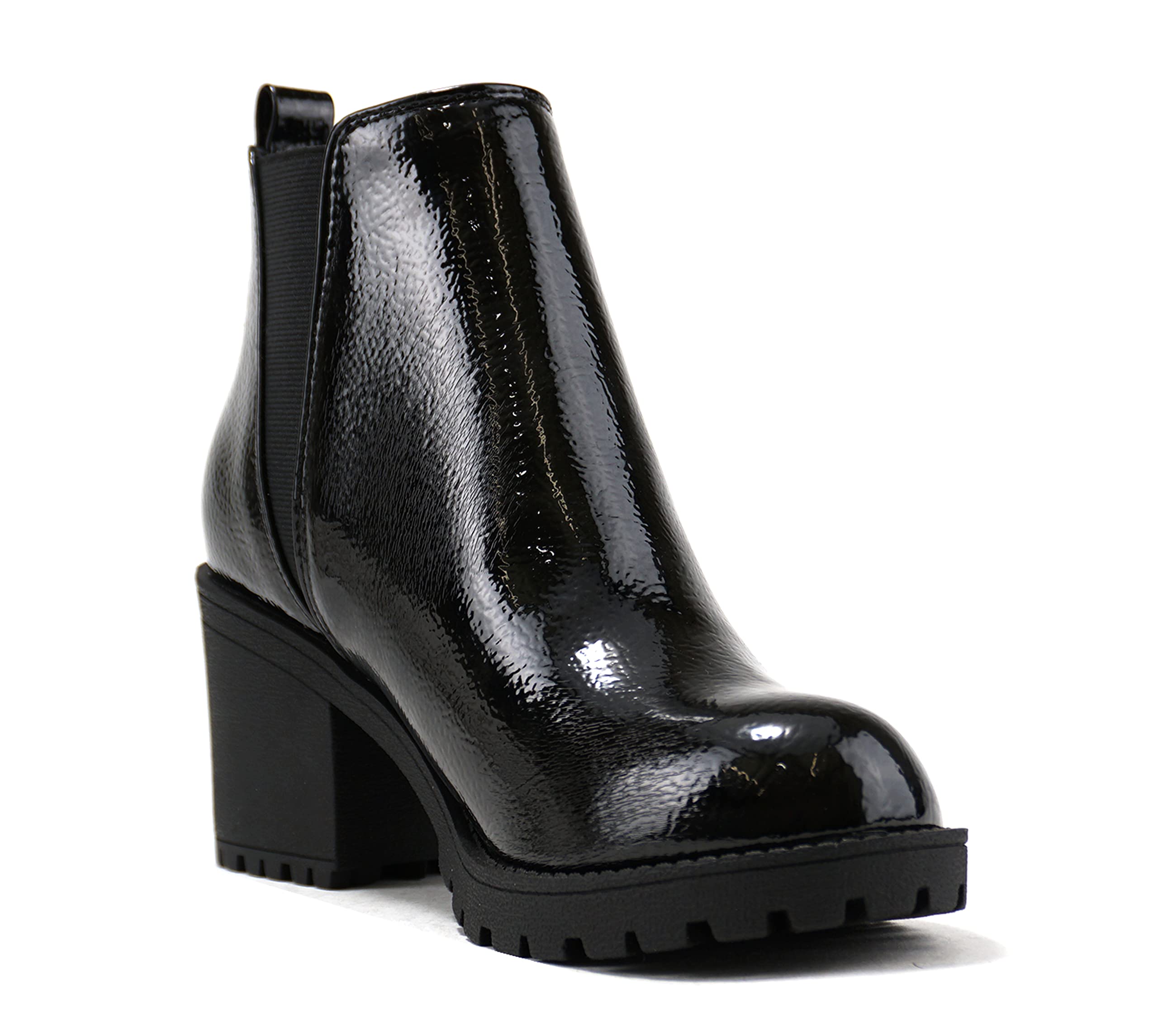 SODA ORIGAMI ~ WOMEN LUG SOLE MID HEEL FASHION ANKLE BOOTIE DOUBLE ELASTIC GORE