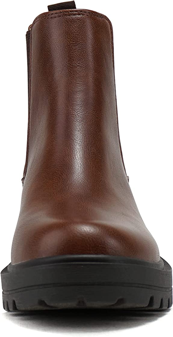 Soda Pilot Dark Tan/Brown Pull On Round Toe Chunky Platform Block Heel Wide Boots