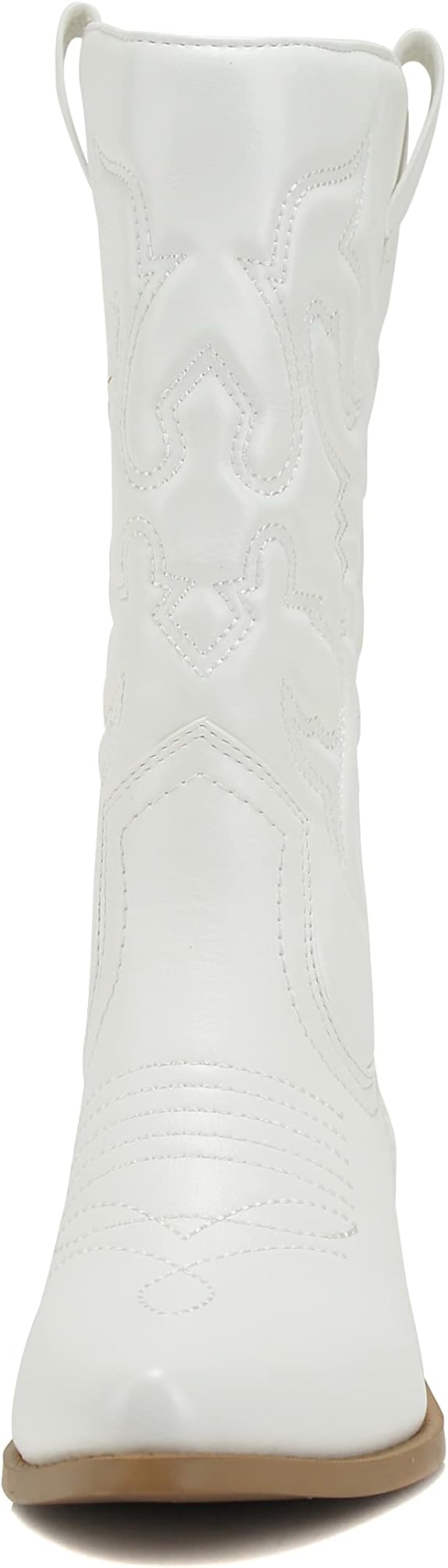 Soda Reno White/Beige Pu Cowboy Pointed Toe Knee High Pull On Western Boots