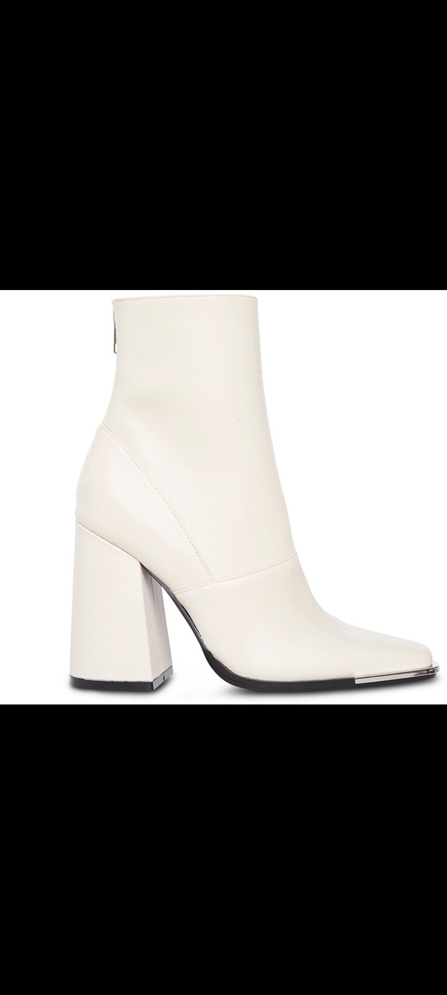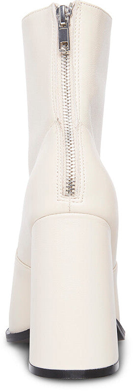 Steve Madden Excess Bone White Leather Squared Toe Blocked Heel Dress Booties