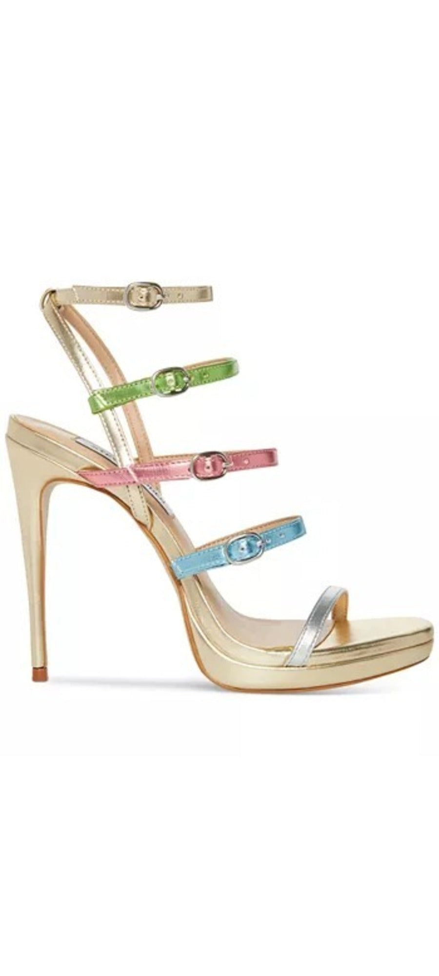 Colorful buckled straps set off sleek stiletto heels in the gorgeous Jubilant sandals.