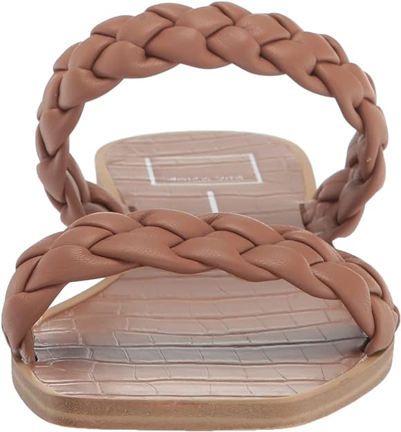 Dolce Vita Indy Caramel Stella Slip On Open Square Toe Woven Straps Flat Sandals