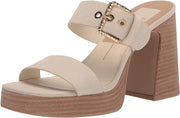 Dolce Vita Landry Ivory Nubuck Slip On Squared Toe Stacked Block Heeled Sandals