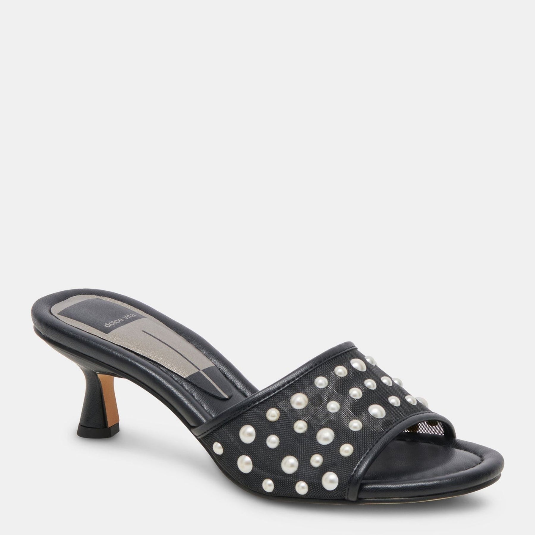 Dolce Vita Meeza Onyx Mesh Pearl Open Toe Slip On Kitten Heeled Fashion Sandals