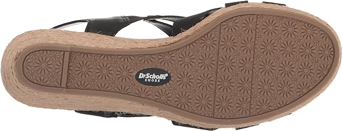 Dr. Scholl's Everlasting Black Smooth Open Toe Slingback Wedge Espadrille Sandal