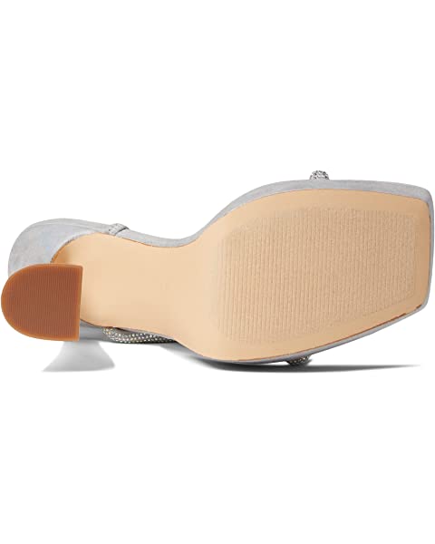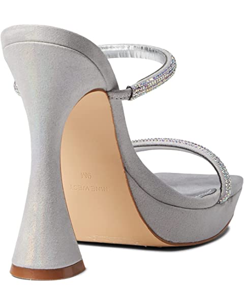 Nine West Adine2 Light Grey Open Toe Slip On Shimmer Detailed Heeled Sandals