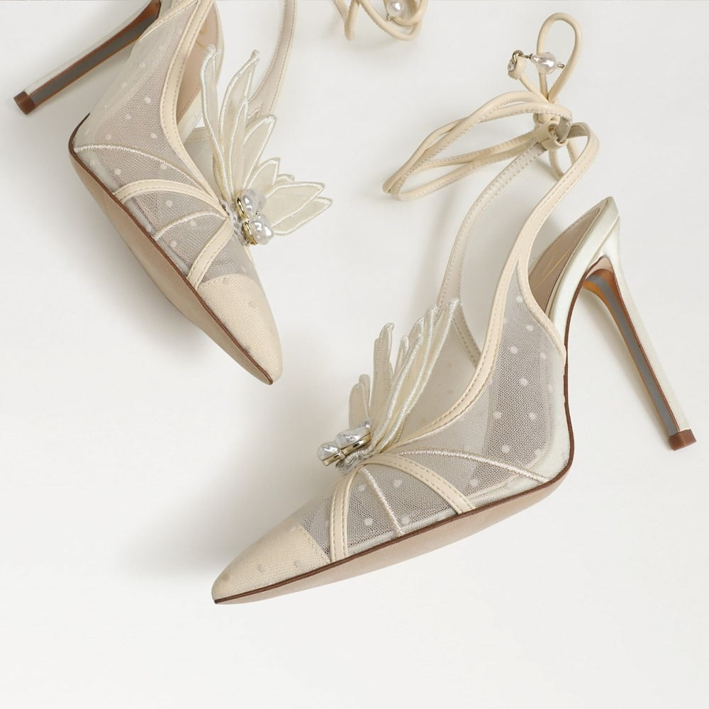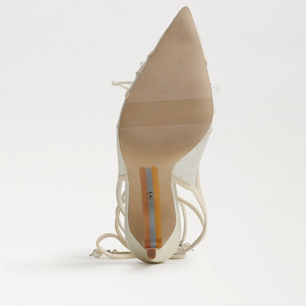 Sam Edelman Aura Pearl Ivory Tie Up Pointed Toe Stiletto Heeled Dress Sandals